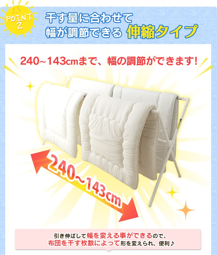 ふとんの枚数に合わせて伸縮できるふとん干しです。