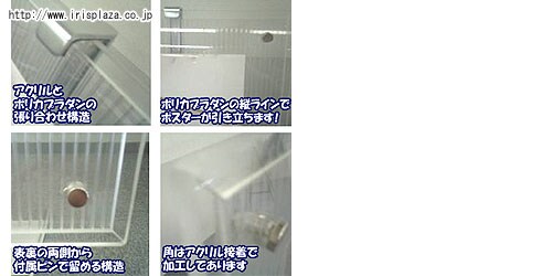 ポスター等が際立つ、クリアフレームのポスターパネルです。