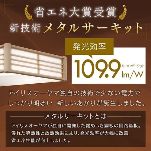 アイリスオーヤマ独自の新技術「メタルサーキット」により、高い省エネ性能と全面発光でムラのない自然な明るさを同時に実現。