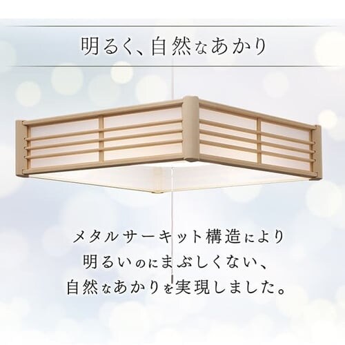 - 築50年の祖母の家の照明器具が壊れたので購入しました。6畳+縁側での使用ですが、天井が濃い茶なので反射が期待できないため、12畳用にしました。高齢の祖母なので、調色も必要なく、リモコンよりも紐タイプがあってよかったです。結果、明るさもコスパ的にも最高です。デザインもシンプルでいいです。次回も必要になればこちらを選ぶと思います。