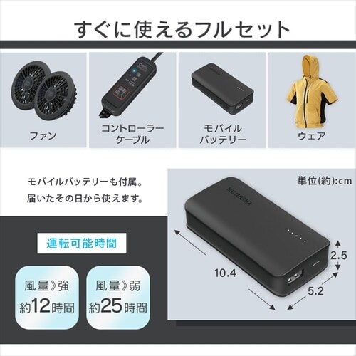 湿気や熱気を放出するファン付きの高機能クールウエアです。
