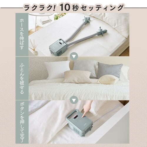 ホースを伸ばす→ふとんを被せる→ボタンを押して完了!