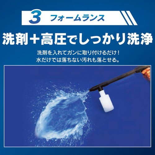 低圧から高圧まで自由に圧力が切り替えられるので、網戸・車・外壁など、さまざまにお使いいただけます。