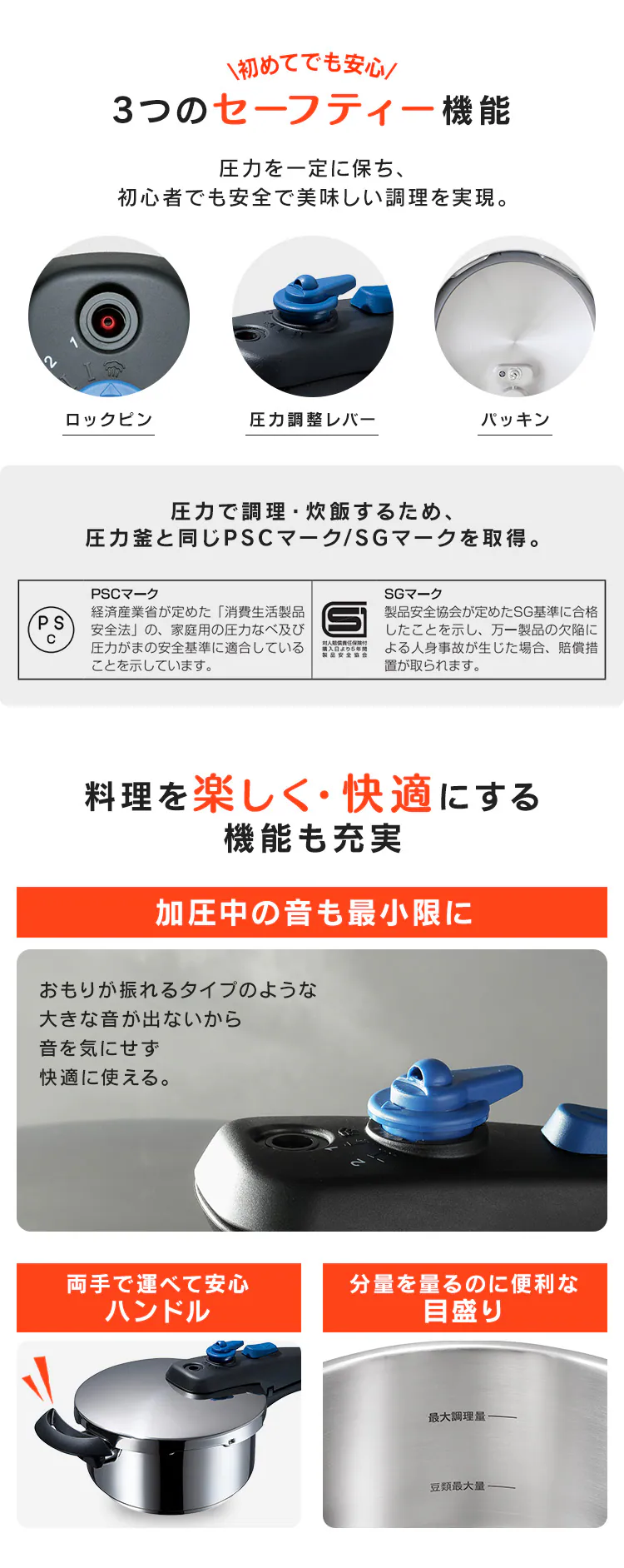 「圧力鍋=難しい」のイメージを変える!操作が簡単で使いやすい圧力鍋です。