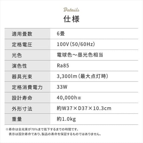 ※寿命は全光束が70%まで低下するまでの時間です。表示は設計寿命であり、製品の寿命を保証するものではありません。