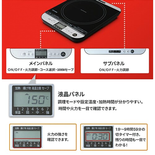 - IHコンロ 1口 1400W 卓上 対面操作式 IHC-T61-B ブラック