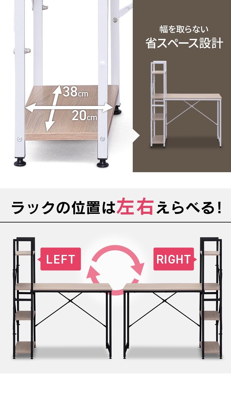 - 机 デスク ラック付き 幅100 RDK1042 ライトナチュラル/ホワイト