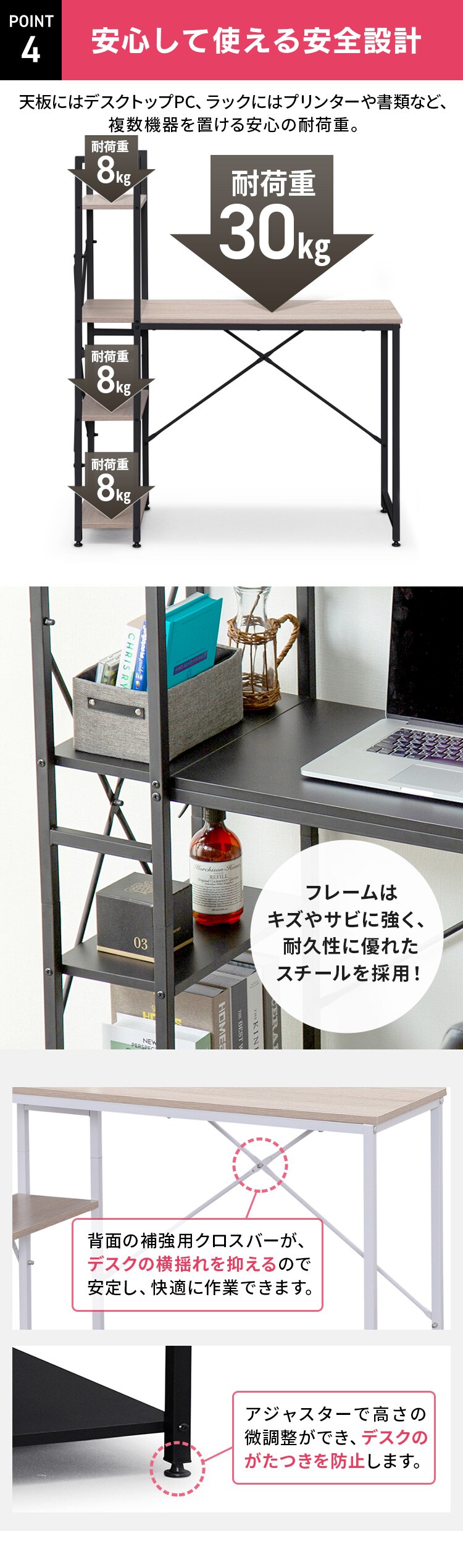 複数機器を置ける安心の耐荷重。