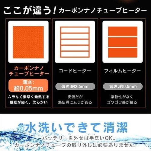 理想の着心地を追求した「カーボンナノチューブヒーター」を採用。