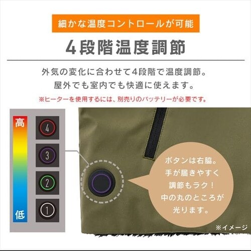 - 購入後、着てみたら中のフリースが暖かくて気に入りました!なのでヒーター機能がまだ使えてないです(笑)これから寒くなっていくためその時に使う予定です。あとはこれの長袖タイプがあれば欲しいですね((o(^∇^)o))