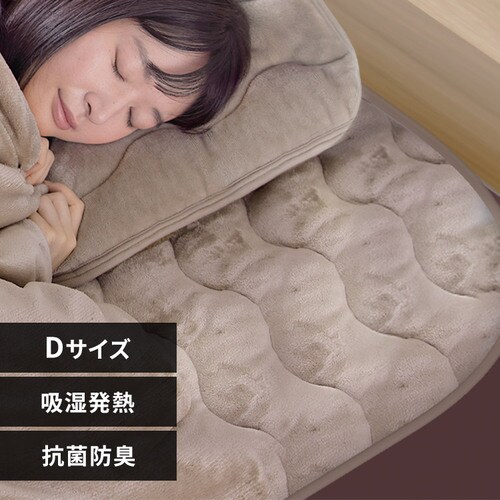 - 敷きパッド ダブル 吸湿発熱 抗菌防臭 洗濯可 ベージュ