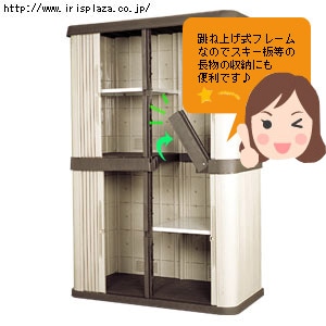 - 注文した次の日に配達され驚きました。最初はいつも利用しているショッピングサイトから申し込もうと思いましたが、アイリスプラザの方が安く、メンバー登録して500円のポイントも併せて購入しました。一人で1時間半ほどで完成。プラスティックなので蛇腹、内壁、外壁、天板の合わせに少々苦労しました、私は園芸用のスコップ等1メートル強の長さのものまでの保管なので、スキーの板までの長さまでのものはなく棚板がもう一枚あると右側上部がもう一段利用できるのではと思いました。別注文でもよいのですが。また鍵を付けられるところもプラスティックでできているので強度はそれほど高くないので簡易的な安全性かと思いました。でも全体的に大きさ、強度、保管できる量から考えると満足しています。