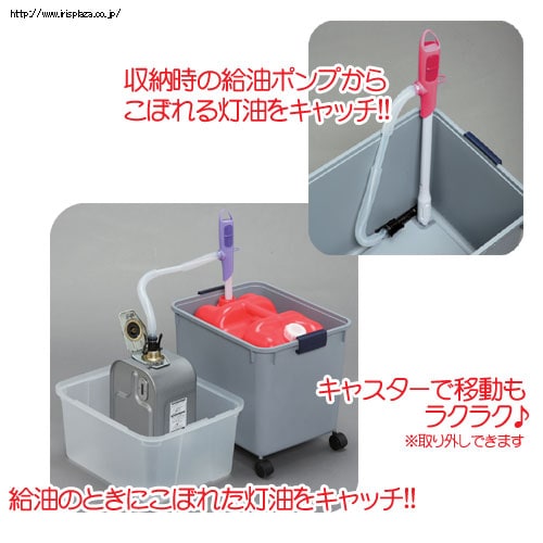 ポリタンクと給油ポンプを1台にまとめて収納できます。