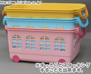 - 大容量で満足です。兄妹3人分のおもちゃが仕分けして一気に片付けられます。取っ手を中側に折り込むと重ねて置くこともでき、子ども部屋もスッキリです。下部にコロコロが付いているので、転がして運んだり、時には子ども同士で乗って、押したり引っ張ったり、と新しい遊び道具ができて、子ども達もとても喜んでいます。