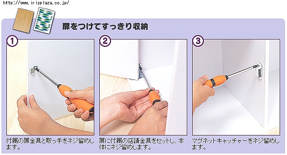 - 取り付けに少し手間がかかりましたが、ピッタリの扉で、中身が見えず、とてもよかったです。色もカラーボックスと一緒で、良かったです。