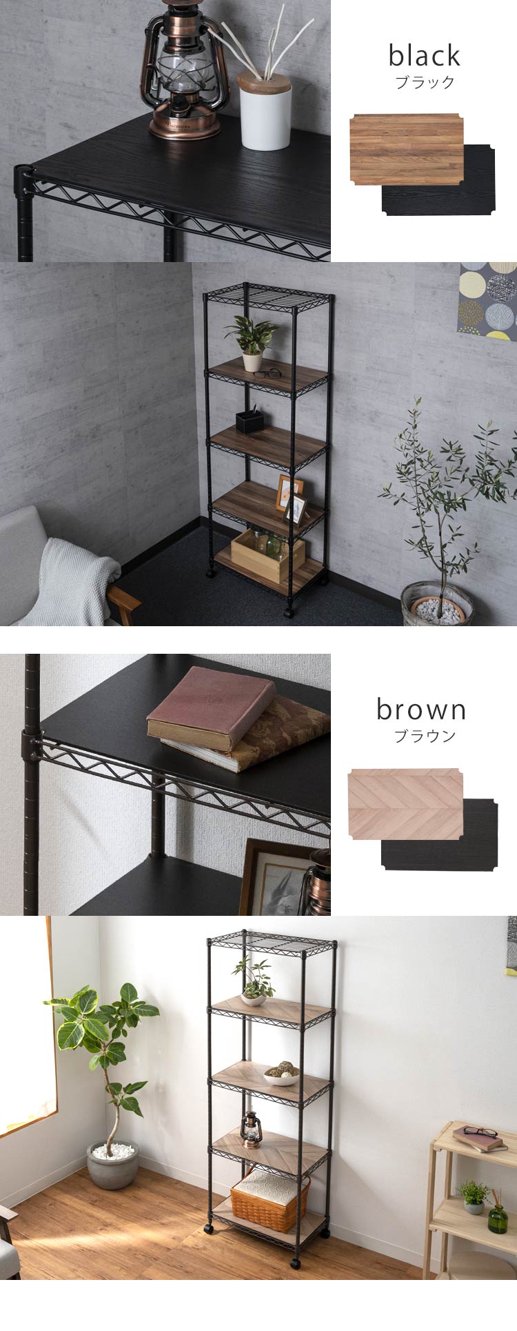 お部屋の雰囲気に合わせて選べる「リバーシブルウッドボート付き」マットカラーのメタルラック。