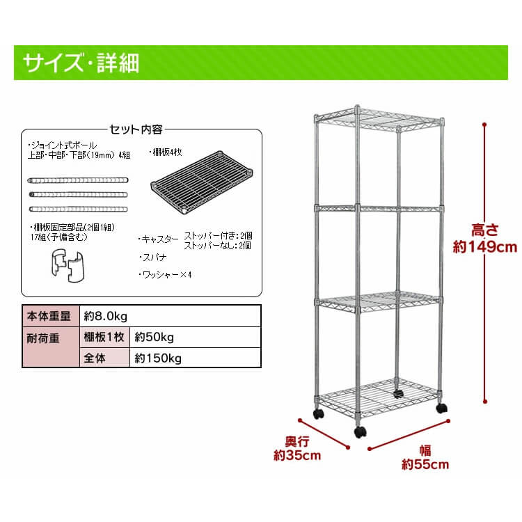 ●商品サイズ(cm):幅約55×奥行約35×高さ約149(キャスター込)