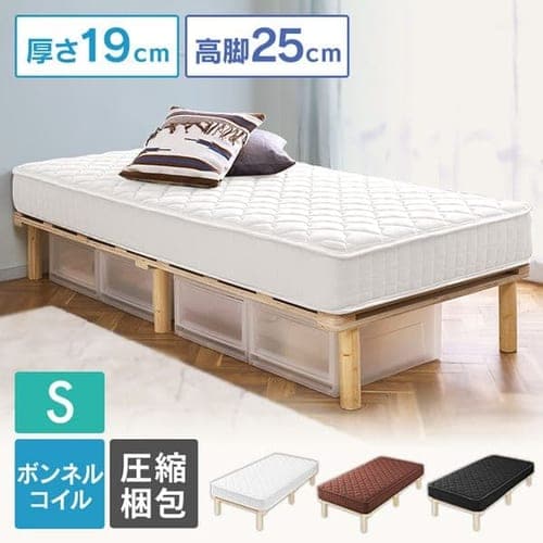 - ベッド シングル 脚付きマットレス ボンネルコイル 厚さ19cm AMT-B95 ホワイト