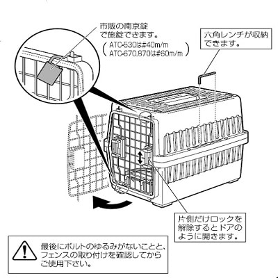 市販の南京錠で施錠できます。(ATC-530・670・870のみ)