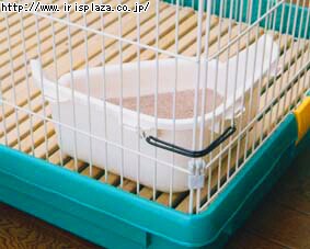うさぎやフェレットなど小動物を対象としたトイレです。ケージのコーナーにピッタリの形で、市販のトイレ砂を敷いてご使用いただけます。また、ケージに固定するためのゴム付き金具が付いているので、ペットが周りで遊んでもひっくり返る心配がありません。抗菌加工が施されているため衛生的です。トイレ砂をすくって捨てるのに便利なスコップ付き。