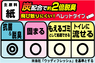 炭を配合したことにより、脱臭力が優れている猫砂です。