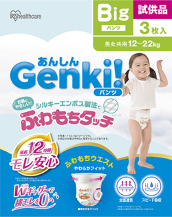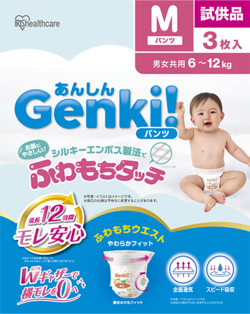 - 当選商品・人数:Genki!ベビーおむつのお試し3枚入、毎月1,000名様