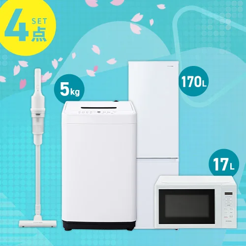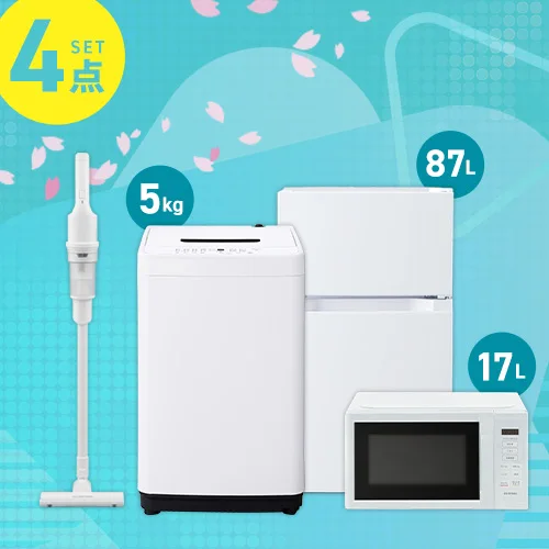 - 冷蔵庫/洗濯機/レンジ/炊飯器 + 掃除機