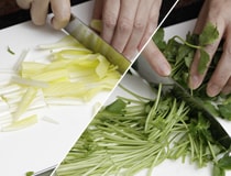 小松菜、菜の花、わらび、うるい、せり、三つ葉は3p程度の長さに切る。