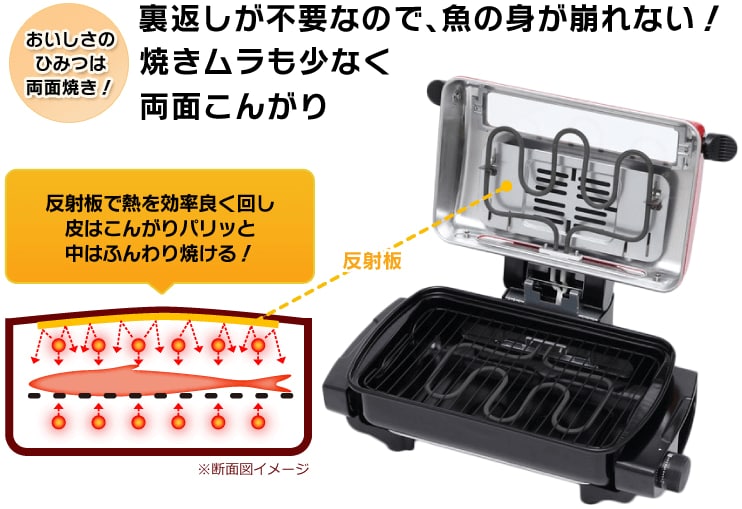 裏返しの手間いらず!上下ヒーターで両面こんがりパリッと焼き上げる