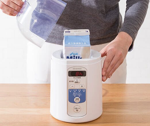 操作はとっても簡単です。専用容器または牛乳パックに生乳と種菌となるヨーグルトを混ぜ、ヨーグルトメーカーに入れて約8時間置いておくだけです。温度管理や途中で混ぜるなどの工程がないため放っておくだけでヨーグルトが出来てしまいます。