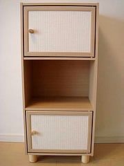 和室にも洋室にも似合うカラーボックスです。白木の様なカラーと籐編み調の扉が優しい印象です。収納量も多く機能的に使えます。