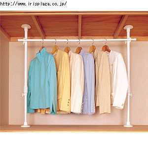 ポールの位置(横幅)も調節可能です。突っ張り棒の固定ネジとアジャスターを中央にあるので、取り付けが簡単です。 - 押入れ突っ張り棒(押し入れ強力伸縮ハンガー)を詳しくみる>>