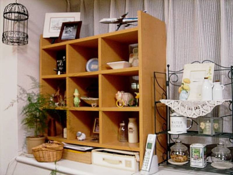 リビング&ダイニングの一角にある、出窓のスペースです。家中のディスプレイコーナーの中で、1番気に入っているコーナーです。旅の思い出もたくさん詰 まっています。(^^ 子供の手でも届かないので、小さなものをたくさん飾っています。ディスプレイに使っているのは、靴棚と、ガーデニング用の棚です。 白にペイントしたいのですが、もう少し落ち着いてから・・と、思っています。