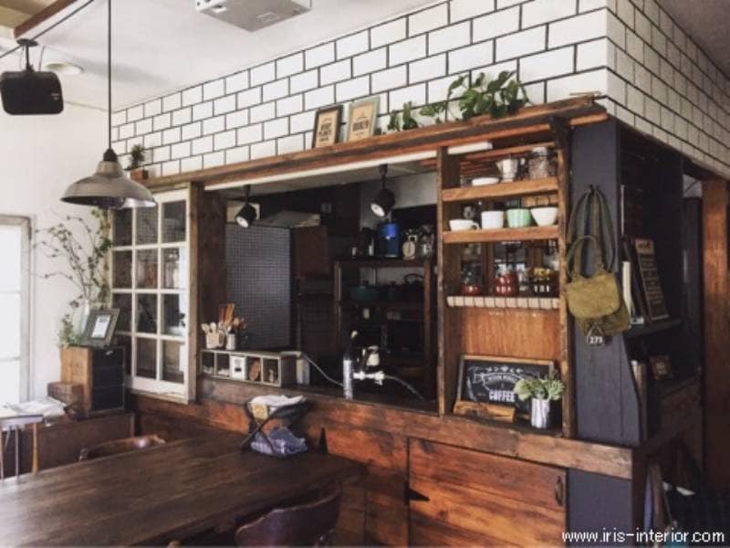 白い漆喰の壁にしていたキッチンカウンター周りに柱を入れ、杉板を塗装して、垂れ壁を黒に塗ったのが1年くらい前のこと。カフェな感じにぐっと近づきました。
