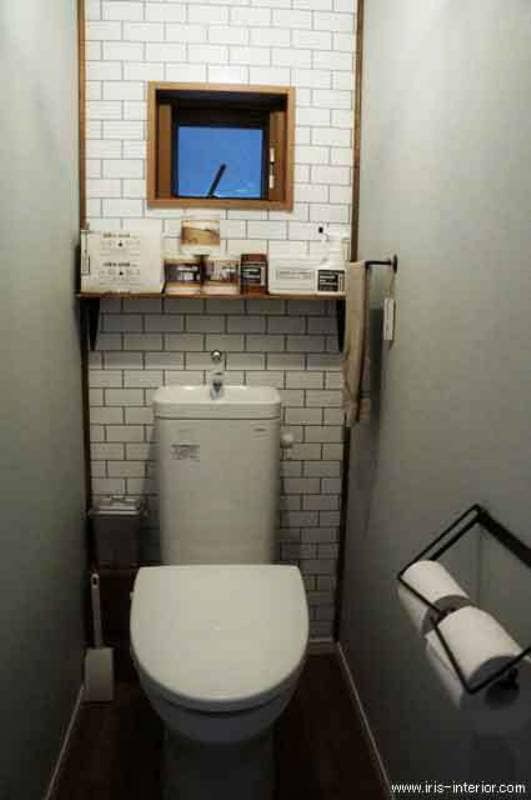 トイレはシンプルに、一面のみサブウェイタイル風壁紙を貼っています。