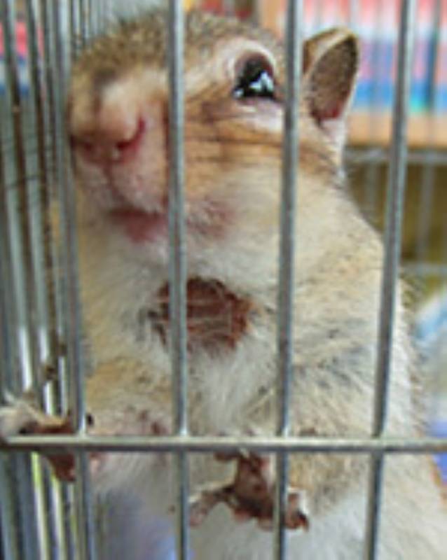 顔や手足、尾に部分的に脱毛部がみられます。円形の場合が多いです。放置すると時間をかけてゆっくりと広がっていきます。