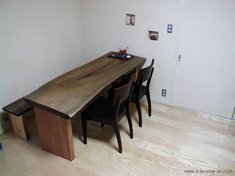 dannaさんのお家最大のこだわりは、ビニールクロスをはがして自分たちで珪藻土を塗ったダイニングの壁。築35年の木造住宅をご自分たちの手でリフォームすることで快適空間へと進化させています。無垢の板を時間をかけて磨きながら作ったダイニングテーブルとベンチもアンティーク調で素敵です。