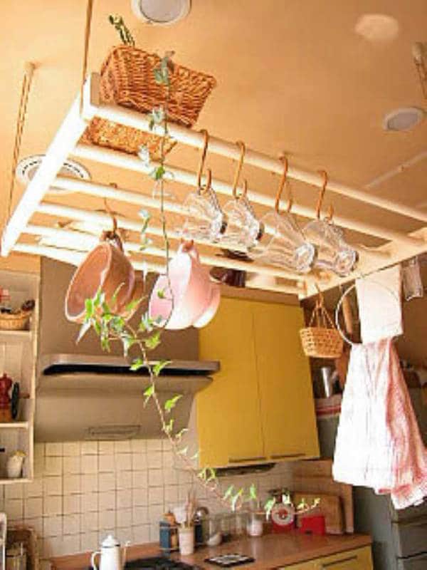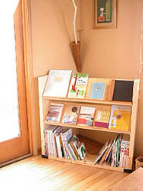 ひまわりさんのお家のオリジナル家具はご主人の作品。ダイニングのディスプレイ兼本棚に大好きな本を飾ったり、キッチンのつり棚にはグリーンを置いたりカップ類を見せる収納にしたりと、お部屋のちょっとしたアクセントになるものをオリジナル家具にすることで楽しんでいます。