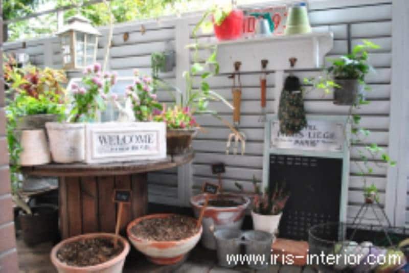 ベランダにウッドパネルやルーバーを設置して、小さな家具を置いた素敵な空間のガーデンです。ご夫婦でガーデニングがしたいという思いから始められ、お花やハーブなどを、大切に育てているそうです。