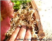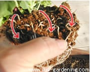 - C:用土が入ったら、表面を湿らした水苔で丁寧に覆いましょう(マルチング)。葉が汚れることを防いでくれて清潔ですし、これから くなりますので、水の蒸発も防いでくれます。