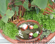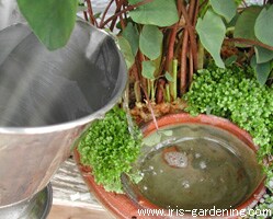 そこで、チョット玄関脇にでも飾れそうな「ミニ水生植物ジオラマ」を作ってみました。