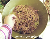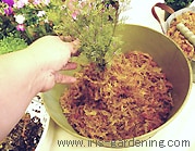 - A:苗をポットから抜き、根をほぐします。コレを1苗ずつ、クルッと水コケで包んで器の中に入れていくだけです。ポイントはとにかく1つずつ個別に包むこと!