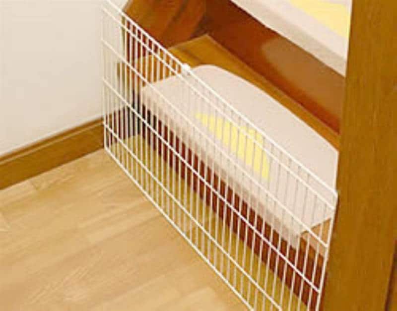 使わなくなったペット用サークルの一面をただ立てかけているだけなので、常に倒れる準備万端のスリルを無駄に味わえます。