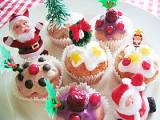 8. カップケーキが冷めたら(5)・(6)・(7)のクリームや飾りを使ってデコレーションする。