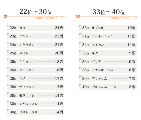 さぁ、あなたの好きなお花は何位にランクインしているでしょうか?