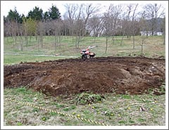 はい、もちろんポイントはありますよ! それは、地面は必ず水平に整地することです。 畑がきちんと水平になっていないと、雨が降ると低いところに養分が流れていってしまいます。さぁ、それでは早速、畑になる所を耕していきましょう! |