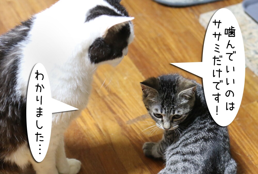 そして今日は思い切り噛まれたようです。さすがのムギも教育的指導をします。