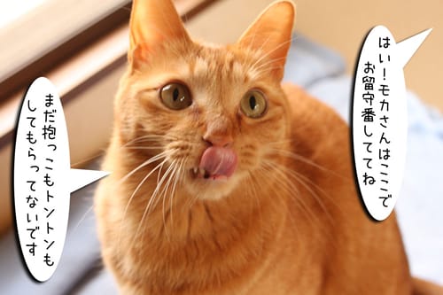 外がよく見えるところに連れて行って見送りしてねと言ってもモカさんは不満顔。
