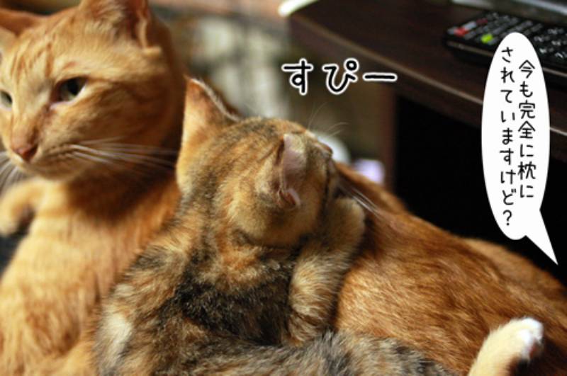 そういえば昨日も散々子猫の相手でお疲れの様子。膝の上にきてもその上に乗られて枕にされる始末。