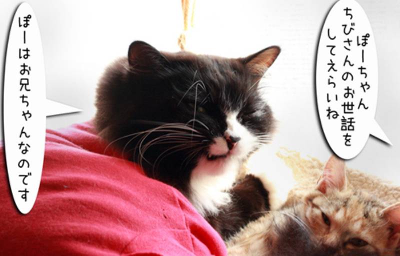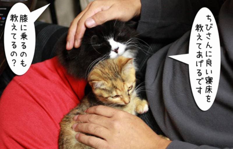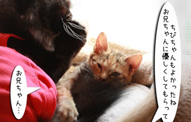 子猫がくるとせっせとお兄ちゃんアピールをします。